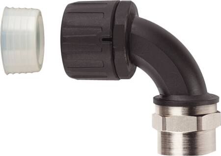 IP68 forskruning med 90° vinkeltilslutning og indvendigt gevind. Hurtig montage, optimal fastholdelse og modstandsdygtig overfor opløsningsmidler og olier. Halogenfri.