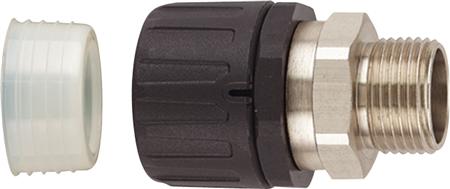 Standard forskruning IP68 med omløber samt mm eller PG gevind. Hurtig montage, fastholder optimalt og er modstandsdygtig overfor opløsningsmidler og olier. Halogenfri.