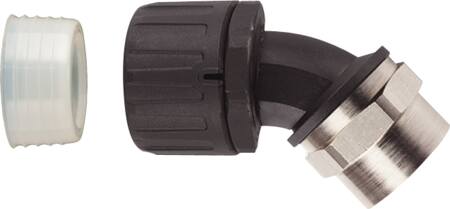 IP68 forskruning med 45° vinkel og indvendigt gevind. Hurtig montage, optimal fastholdelse og modstandsdygtig over for opløsningsmidler og olier. Halogenfri.