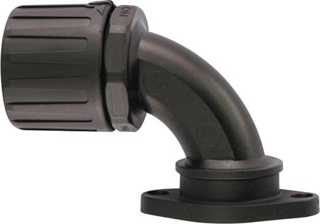 IP68 forskruning med 90° flange tilslutning. Hurtig montage, optimal fastholdelse og modstandsdygtig overfor opløsningsmidler og olier. Halogenfri.