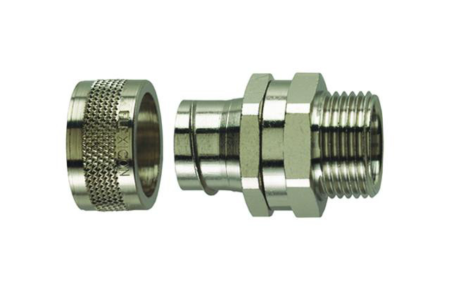 HelaGuard SSC-SM metalkonnektor i rustfri stål med omløber og udv. gevind, IP40. Hurtig montage og fastholder optimalt.