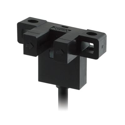 Kompakt L-formet fotomikrosensor med NPN-udgang og 1 meter robotkabel. Vælg mellem L-ON/D-ON for fleksibel detektion.