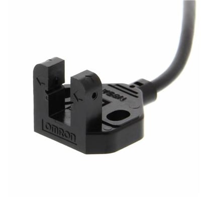 Fotomikrosensor med L-formet design og 5 mm slidsbredde. Udstyret med indfaldsindikator, L-ON, NPN-udgang og 2 meter kabel. Spændingsområde: 5-24 V DC.