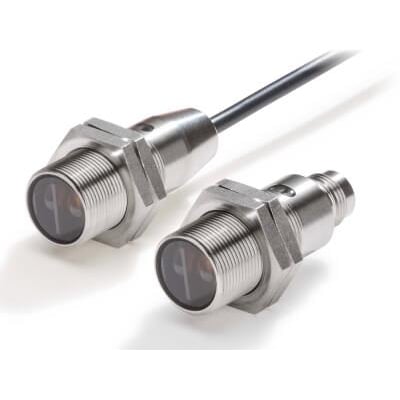 Robust fotoelektrisk sensor med M18 gevindcylinder i rustfrit stål. Udstyret med rød LED, baggrundsdæmpning op til 200 mm og PNP-udgang. Kan indstilles til Light-ON/Dark-ON og har M12 stik.