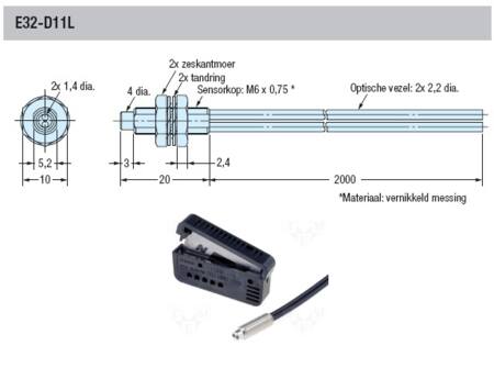 Bemærk: Dette sensorhoved kræver en E3X forstærker for at fungere korrekt.