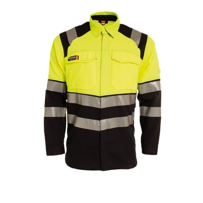 Denne metalfri og inherent flammehæmmende Hi-Vis skjorte er ideel til arbejde, hvor høj synlighed og beskyttelse er påkrævet.