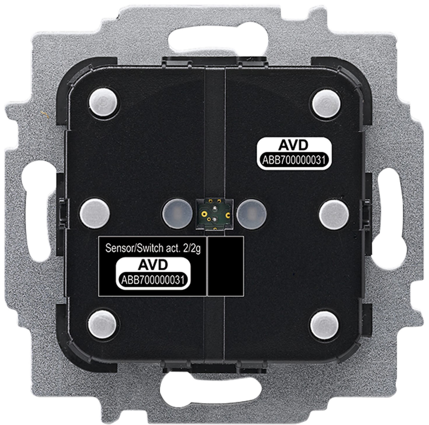 Tryk med relæmodul til ABB-free@home. Tryk-indsats med 2/4 trykkontakter og indbygget 2-kanal relæmodul (2x1380W/920VA) til styring af stikkontakter, belysning, ventilation og meget andet. Relæmodulet er uafhængigt af trykkontakten og kan betjenes fra alle systemets tryk, sensorer og lignende.