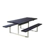 FRIGG bordbænkesæt, 1750 x 1400 x 720 mm, er udført i galvaniseret stål med 42 mm massive planker i sortmalet fyrretræ. Moderne, uformelt og hyggeligt design.