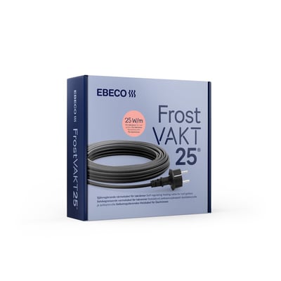 Frostvakt 25 har et 4 meter langt tilslutningskabel med stik og er velegnet til midlertidige installationer i tagrender og nedløbsrør.