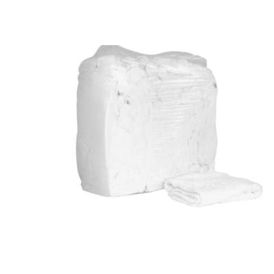 Meget absorberende, bløde og fnugfri frottéklude. Leveres i 10 kg presset kuber i klar plastpose (ca. 40 cm x 40 cm). Kvalitet: Hvide håndklæder.