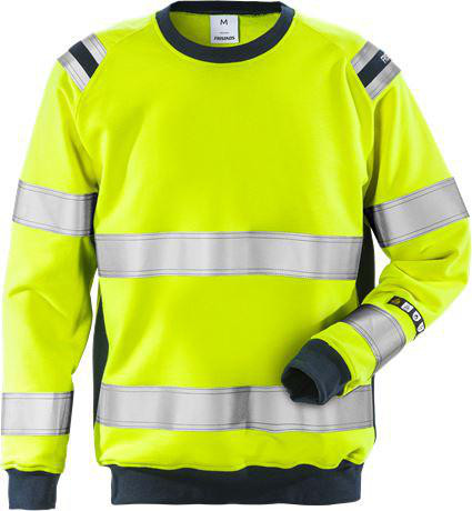 Sikkerhedssweatshirt med refleksbånd på skuldrene. Elastisk rib i krave, talje og manchetter. Godkendt til industrielt brug.