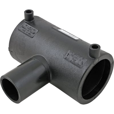 DK-VAND godkendt FUSAMATIC elsvejse reduktions tee fra AVK FUSION. PE100 materiale med fuldautomatisk aflæsning af svejsetider. Godkendt til vand PN16 og gas PN10.