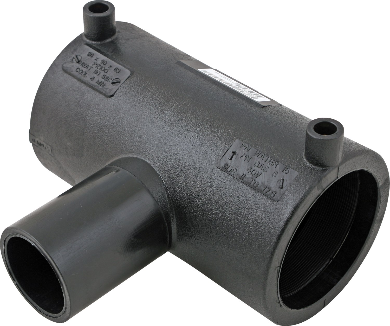 Reduceret tee i PE100 til rør med diameter 160x110 mm. Trykklasse PN16 og SDR11.
