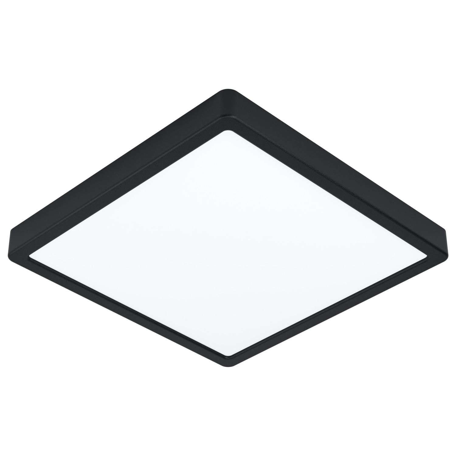 Denne loftlampe fra EGLO CONNECT serien, model Fueva-Z, kombinerer moderne design med avanceret smart home teknologi. Lampen er udført i aluminium med en mat sort finish og har dimensionerne 28,5 cm x 28,5 cm med en højde på kun 2,8 cm, hvilket gør den diskret og stilfuld til enhver indendørs installation.