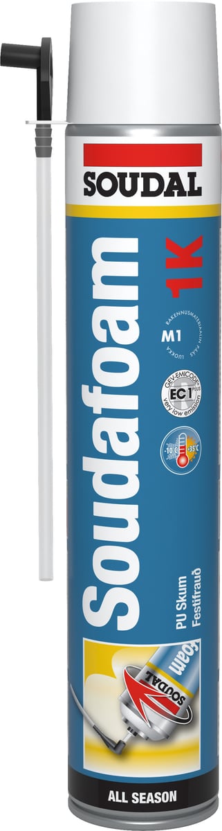 Soudafoam 1K er en alsidig, ekspanderende helårsskum, der kan bruges til mange forskellige formål inden for byggeri og isolering. Den er anvendelig helt ned til minus 10 grader, hvilket gør den ideel til brug året rundt.