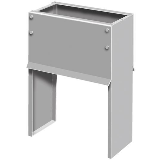 Nedgravningsfundament Mark-S 98, fremstillet i galvaniseret og malet stålplade. Højden over jorden er 100mm. Anvendes til SDC 98 teknikskabe.