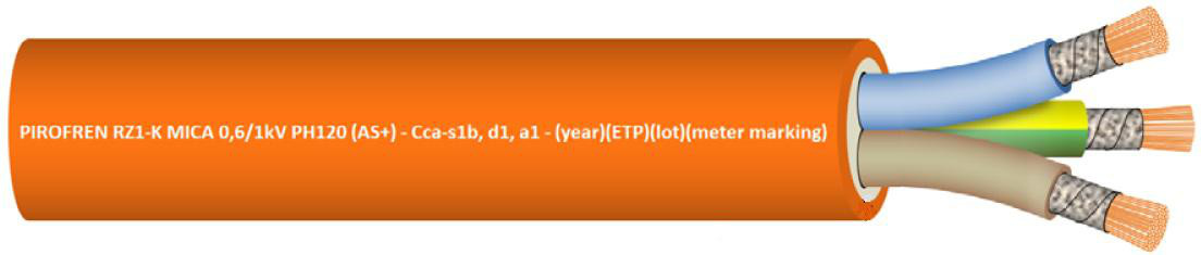 - Kablet er opbygget med tværbundet polyethylenisolering og halogenfri polyolefin yderkappe
