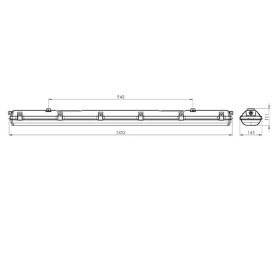 FUTURA ES AGRI 1500 ABSc 16000/840 IP66, 14160lm, 144LM/W. Udviklet til industrielle miljøer med alkaliske forbindelser og kemisk resistens over for kemikalier som ammoniak og lud.