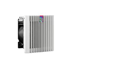Komplet filterventilator til værktøjsfri montage. Med en luftkapacitet på 63/72 m³/h og IP 54 kapslingsklasse, ideel til væg- og gulvskabe.