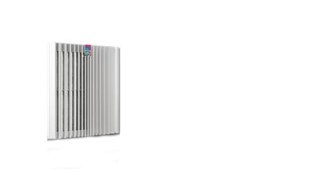Udgangsfilteret måler 323 x 323 mm og leveres i RAL 7035, hvilket sikrer en diskret og professionel integration i de fleste skabs- og systemløsninger.