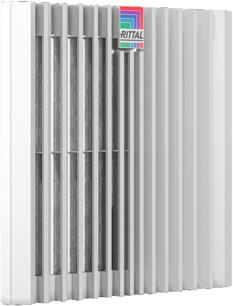 Rittal Blue e+ udgangsfilter EMC, designet til nem og værktøjsfri montering med optimerede låsekroge og en ny åbningsmekanisme for hurtig filterudskiftning.