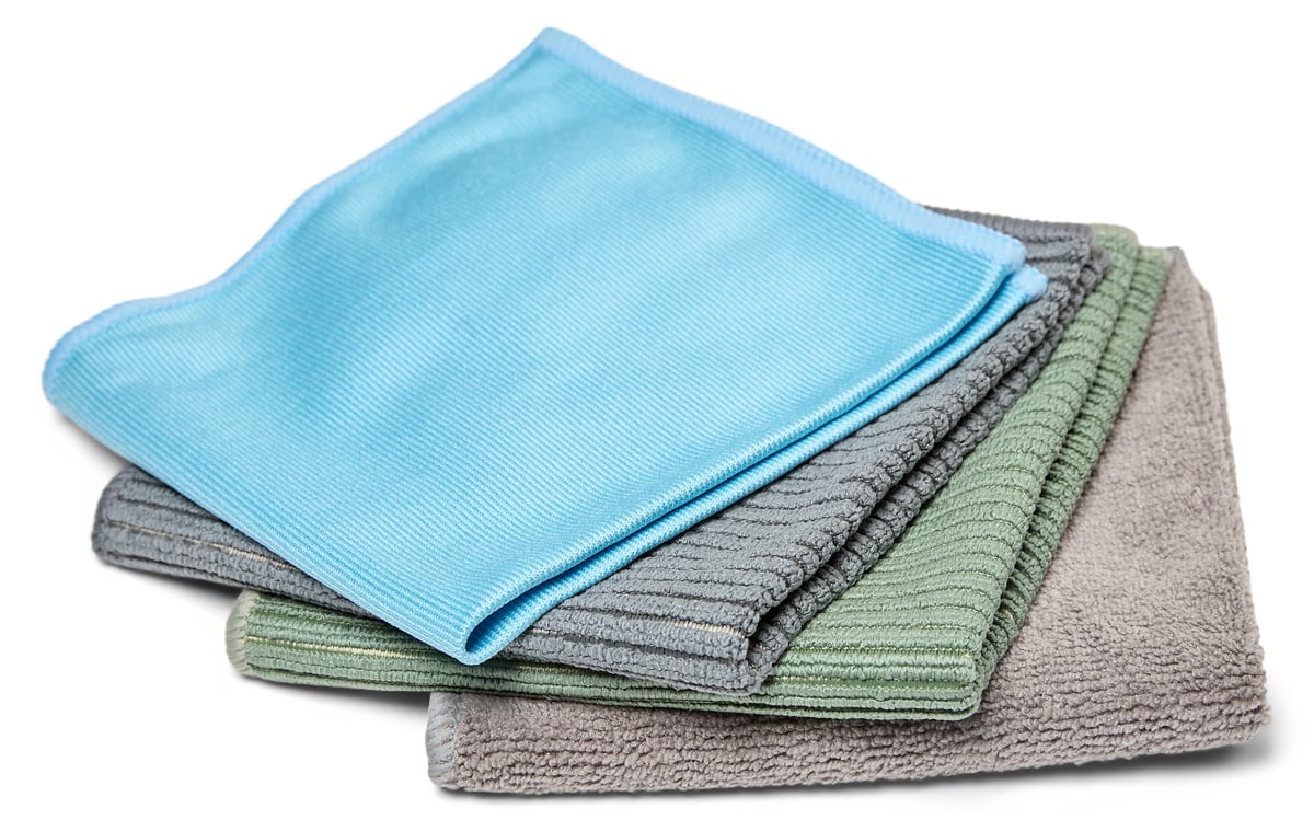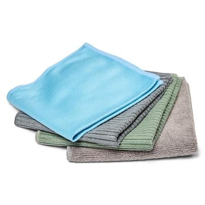 4 mikrofiberklude til specifikke områder: køkken, bad, glas og multiklud. Kan bruges vådt og tørt.
