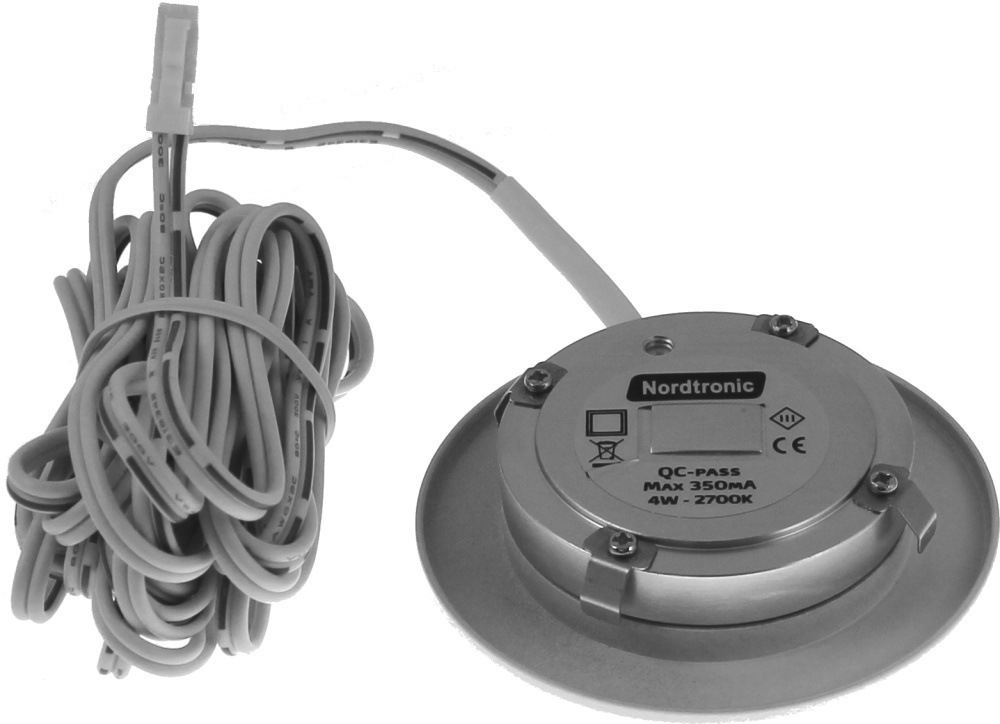 Materiale:Spottet er primært udført i aluminium med af dele plast og stål, og det har mange fordele. Udseendet er mere rent og eksklusivt og aluminium køler godt. Derfor får du en optimal køling af LED'en og en længere levetid med et Nordtronic spot.