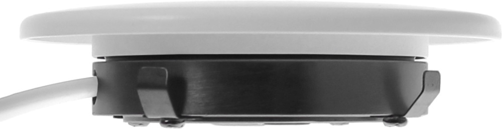 Påbygning: Ved påbygning er den totale højde 20 mm (inkl. spot og påbygningsring). Først skrues påbygningsringen fast på plade eller loft. Når ledningen derefter er på plads, trykkes spottet blot op i påbygningsringen, hvorefter den bliver fastholdt af sine 4 fjeder-clips. Påbygningsring skal købes separat.