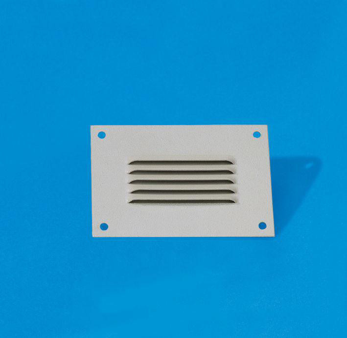 Gælleplade til naturlig ventilation. Nem montering med 4 skruer. Dimensioner: 210 x 100 mm. Materiale: Pladestål. Farve: RAL7035.