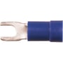 Isolerede gaffelkabelsko A2553G med M5 laske. Fremstillet af fortinnet Cu 99,95% og plast PC. Velegnet til 1,5-2,5 mm² Cu-ledere. Isoleringsfarve blå.