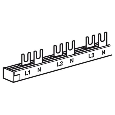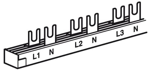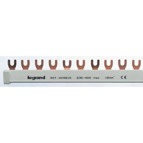 Legrand gaffelsløjfeskinne 10mm2, 2-polet, fasefordelt på 3 faser til max 6 komponenter, længde 21,4 cm. Kan afkortes.