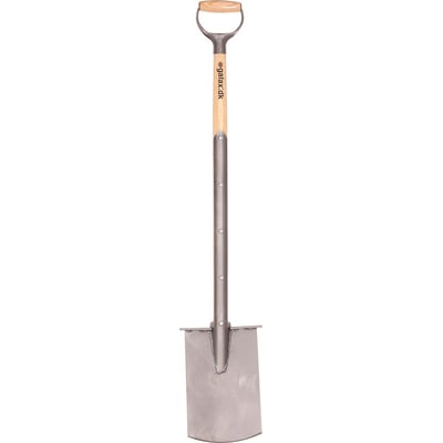 Galax entreprenørspade med lang skinne, ideel til professionelle. Med lakeret asketræsskaft og kraftigt D-greb i jern. Blad: 290x190 mm, totallængde 1160 mm.
