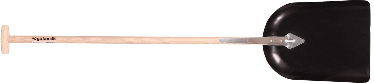 Galax grus-/staldskovl i lille størrelse. Fremstillet med et dansk asketræsskaft og krykke. Skovlbladet har runde skuldre og er hærdet. Mål: 37x28 cm.