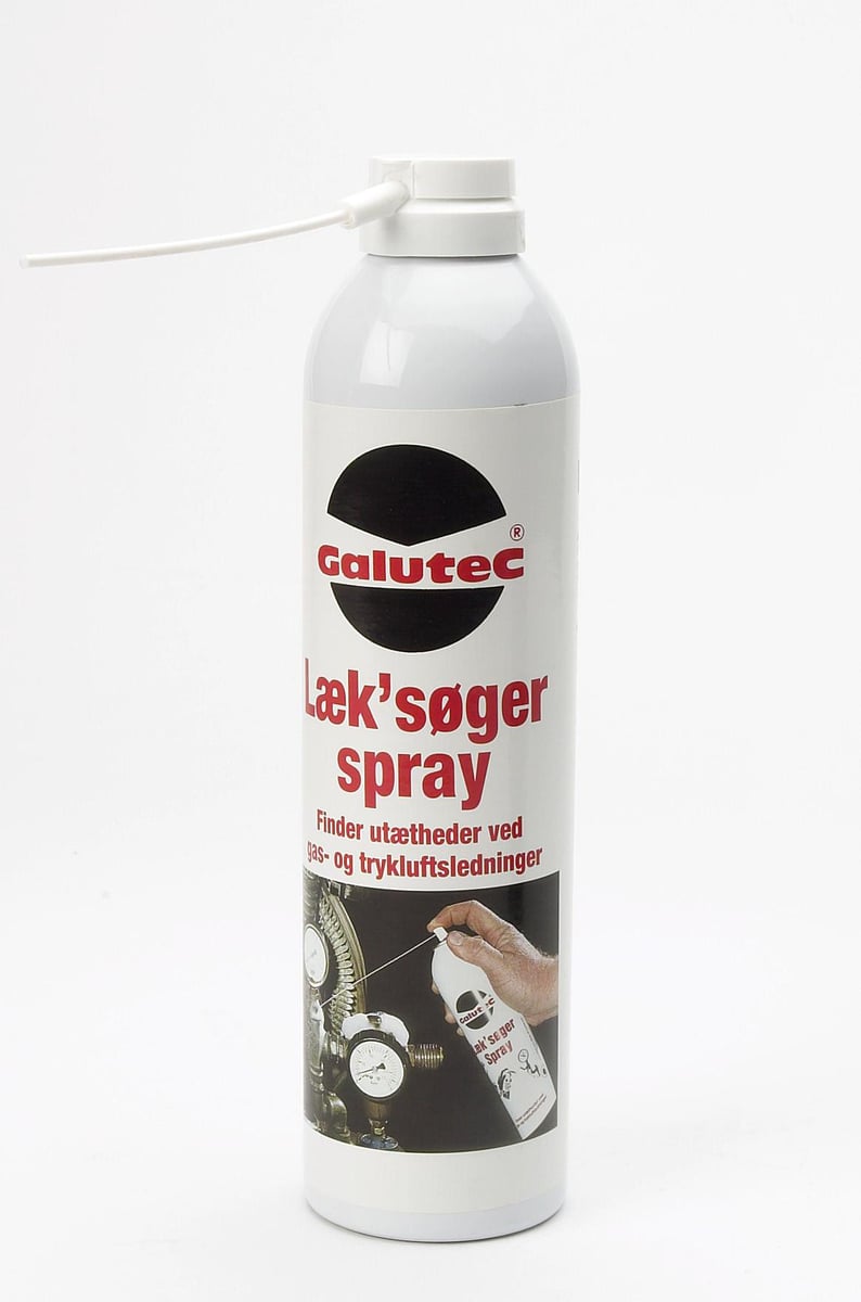 Galutec lækagesøger spray finder alle utætheder ved fittings, samlinger, bøsninger, slanger, ventiler m.m. - alle steder hvor luft eller gasarter passerer under tryk.
