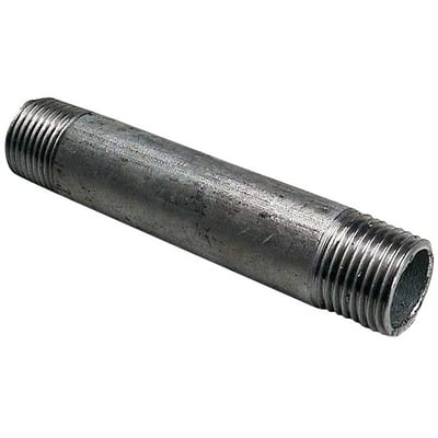 Galvaniseret nippelrør. Har udvendigt gevind i begge ender. Billedet er kun vejledende. Findes i mange forskellige dimensioner og længder.