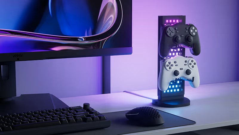 Denne gaming skrivebordslampe er designet til at forbedre din spiloplevelse og holde dit setup organiseret. Den kombinerer effektiv belysning med en praktisk dockingfunktion, hvilket gør den til en essentiel tilføjelse til enhver gamerstation.