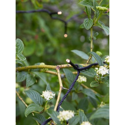 Sort Garden 24 lyskæde fra Markslöjd med 240 lys og en total længde på 2 mm. Perfekt til udendørs brug.