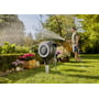 En af de primære fordele ved Gardena RollUp M er dens automatiske oprulningsfunktion. Efter brug rulles slangen automatisk og jævnt op, hvilket eliminerer besværet med manuel oprulning og forhindrer knæk på slangen. Slangeboksen kan drejes 180° på vægbeslaget, hvilket giver fleksibilitet og mulighed for at nå alle hjørner af haven uden at skulle flytte boksen.