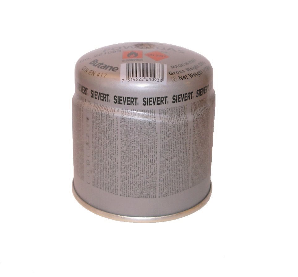 Sievert punkterbar engangsgasdåse med 100% Butangas. Passer til Butajet brændersystem. Flammetemperatur 1925°C. Indhold 190 g.
