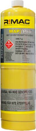 Professionel MAP Pro gasdåse med sikkerhedsventil. Miljøvenlig gas uden giftstoffer og ekstrem lang brændetid. Engangsdåse af stål med US gevind (1").