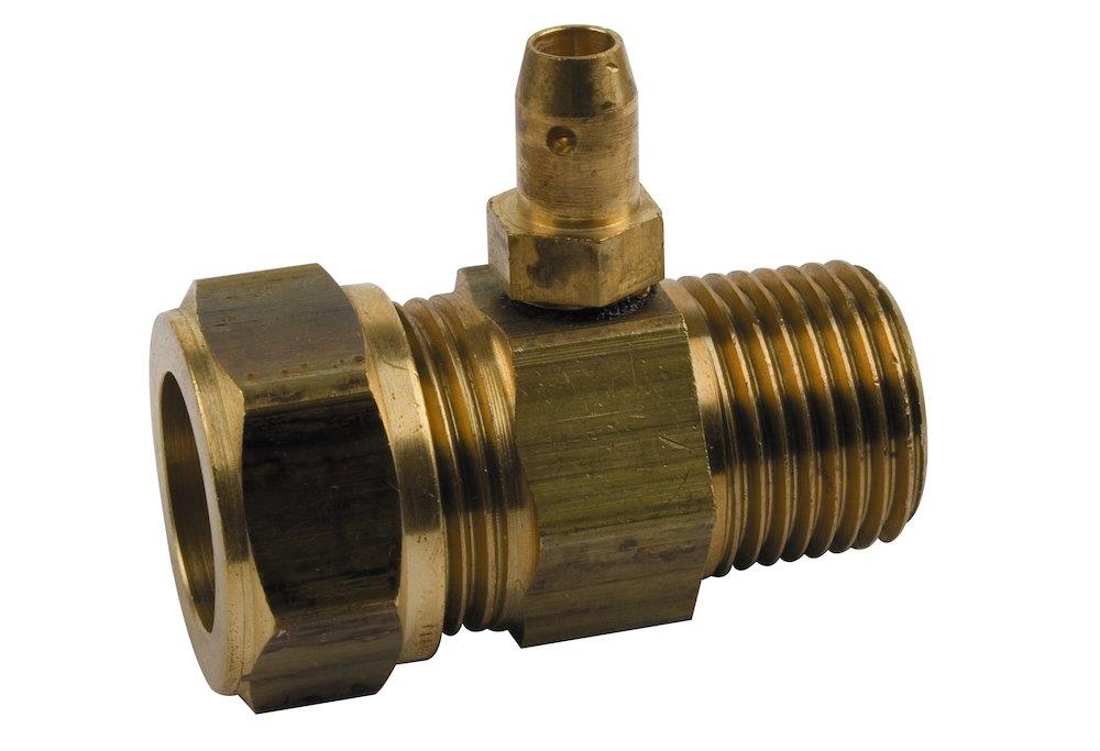 Gasprøvestuds i messing med 18 mm diameter og 1/2" gevind. Godkendt til gas med et tryk på op til 4 bar.