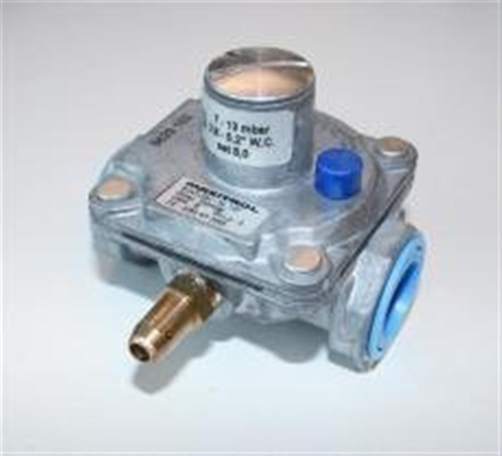 Gastrykregulator til husinstallationer med 1/2" gevind og et trykområde på 7-13 mbar.