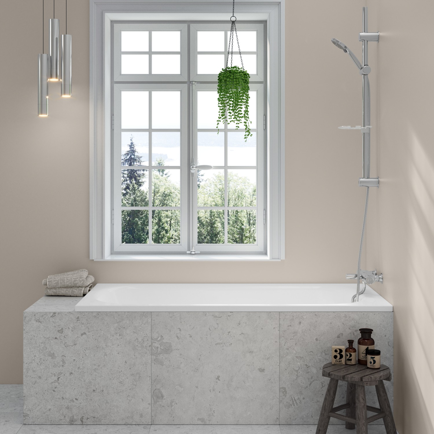Rektangulært badekar til indmuring fra Gustavsberg, udført i titaniumstål og med overløb.