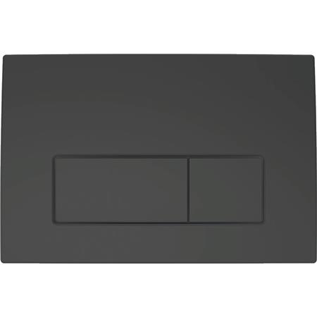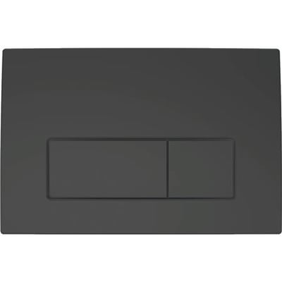 Geberit Delta50 betjeningsplade i sort mat til dobbeltskyl. Denne betjeningsplade er designet til frontbetjening og er kompatibel med Delta indbygningscisterner.