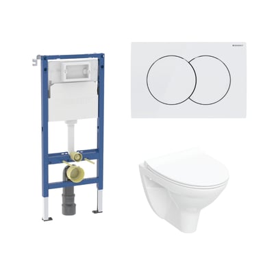 Geberit Duofix 112 cm toiletpakke inkl. cisterne, Geberit Selnova væghængt + SoftClose toiletsæde, Geberit Delta01 rund, hvid/blank tryk - byg selv