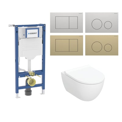 Geberit Duofix 112 cm toiletpakke inkl. Geberit Acanto væghængt toilet + toiletsæde, Geberit Sigma40 round, messing