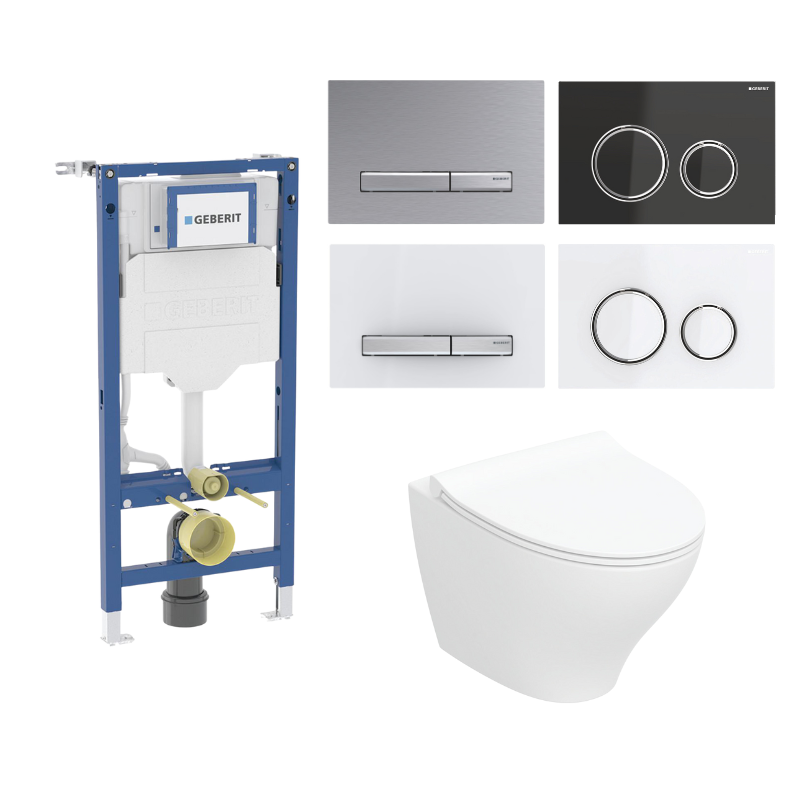 Geberit Duofix 112 cm toiletpakke inkl. Ifö Spira Style væghængt toilet + toiletsæde, Geberit Sigma50 round hvid/krom