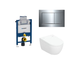 Geberit Duofix 112 cm toiletpakke inkl. Geberit AquaClean Alba douchetoilet væghængt, Geberit Sigma20 round, blank/krom
