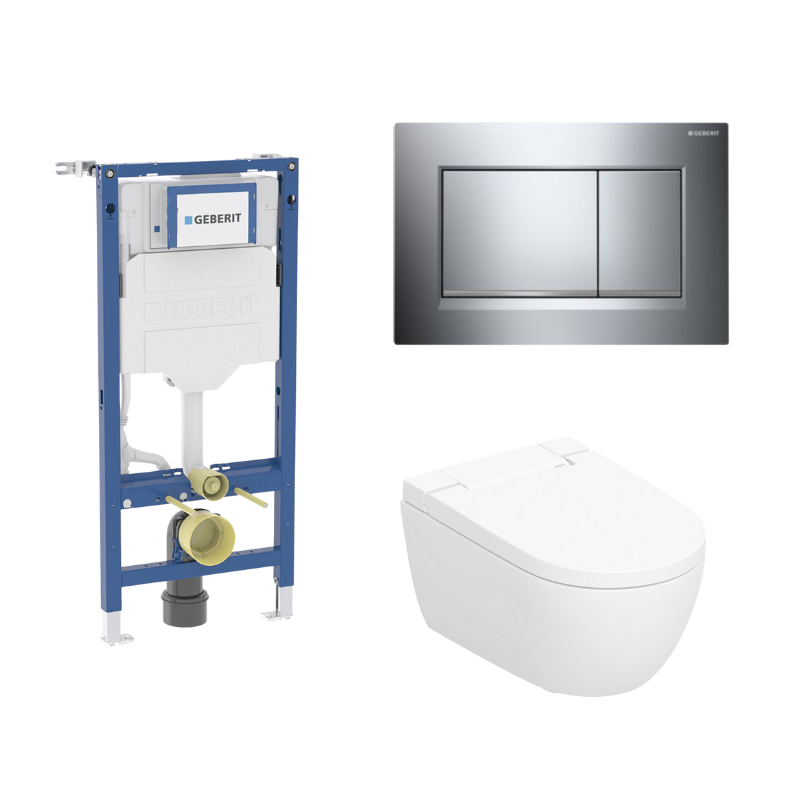 Geberit Duofix 112 cm toiletpakke inkl. Geberit AquaClean Alba douchetoilet væghængt, Geberit Sigma20 round, hvid/krom