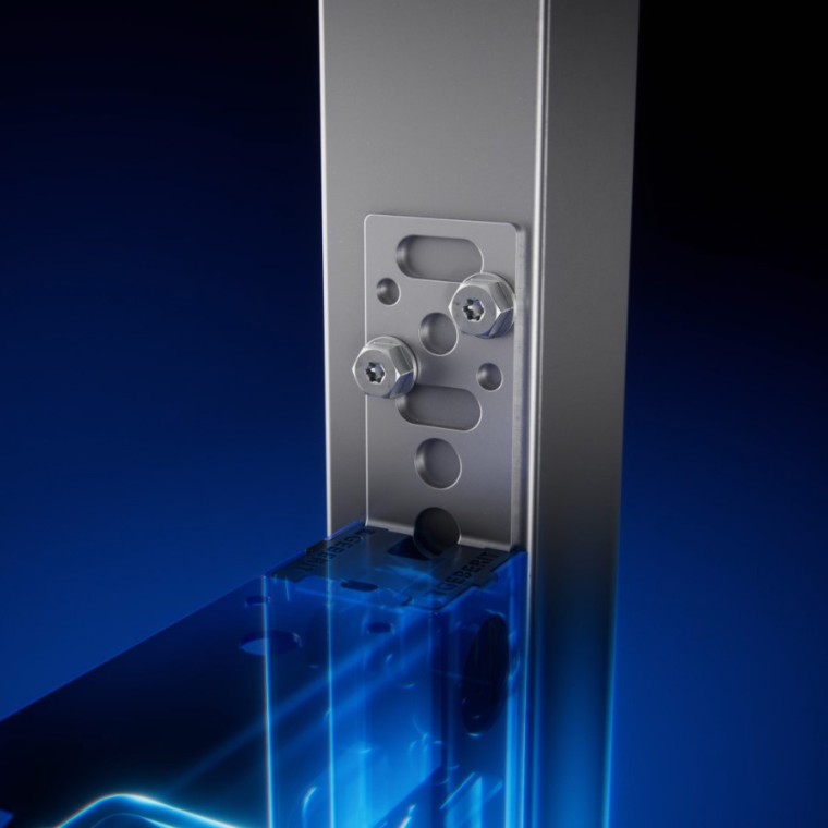 - Integrerede sidebeslag gør det muligt at fastgøre elementet direkte til lodrette skinner uden brug af ekstra tilbehør.